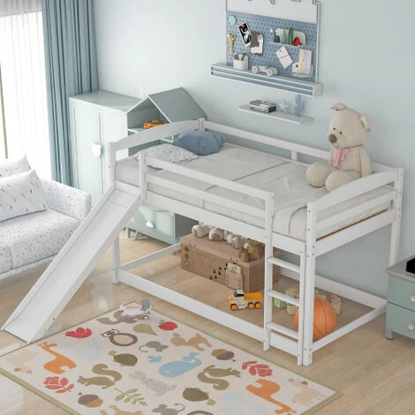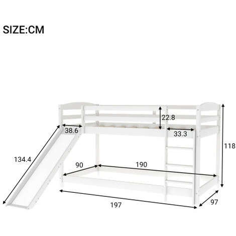 - [Low Bunk Bed with Slide] The unique slide design meets the family members’ game needs.Everyone will love the multifunctional design, it will can turns your living room into a playroom. But easily removes when it’s no longer needed. The slide