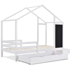 - Praktikabilität und Kreativität kombinieren:Das Bett hat eine allgemeine Dachform,die den Bewegungsraum erweitert.Die Vorderseite ist mit einer 84*39cm großen Tafel ausgestattet und macht es zu einem kostengünstigen Bett,das Unterhaltungs- und Schlaffunktion vereint. , dem Schlafzimmer Ihres Kindes ein fantasievolles Gefühl der Kreativität zu verleihen. Sie können auch Zelte aufstellen, in denen Ihre Kinder mit ihren Freunden oder Geschwistern Verstecken spielen und sicher und fest schlafen können.