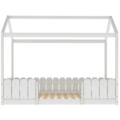 | Mit Dach und Zaun schafft dieses einzigartige Bett einen lustigen und bezaubernden Raum, der nicht nur als bequemer Schlafbereich dient, sonder auch als Platz für Ihre Kinder zum Spielen und Spaß haben. Das Oberflächenmaterial ist leicht zu reinigen, Mütter müssen sich keine Sorgen machen, dass Kinder Bilder auf den Bettrahmen zeichnen. |