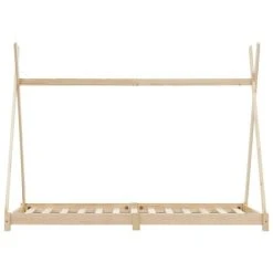 Create the ultimate hideaway in your children’s bedroom with our fantastic bed frame! The bed features novelty crossover framework inspired by the cool tipi style tents where you can hang bed curtains to create privacy for your kid. It can also be used as a reading nook or a play house for your child. Made of solid pine wood, this bed frame is exceedingly sturdy and durable. The strong slats offer the needed support and are highly comfortable. This bed frame is suitable for a mattress of 80 x 160 cm. Please note that delivery includes a bed frame only; a mattress and curtains are not included. The bed is easy to assemble. You can check our shop for the matching mattresses.