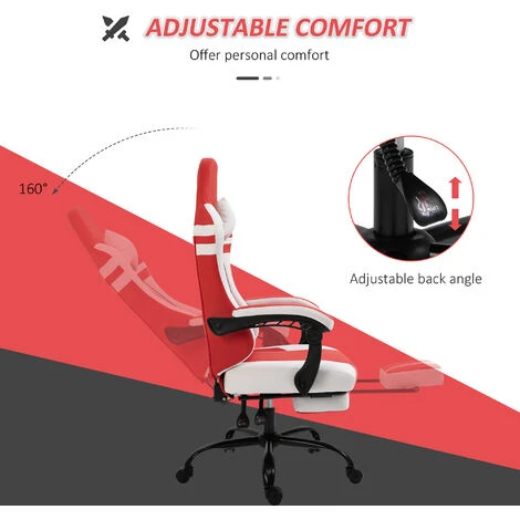 It’s time to amp up the style points in your gaming room with this gaming chair with footrest from Vinsetto. A removable pillow on both the neck and back area provide additional support when seat, and you can easily adjust the height for an even more personalised experience. The computer chair is finished with a manual footrest, which is perfectly paired with the reclined back so you can lean back in ultimate comfort.