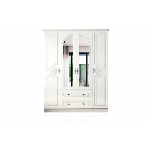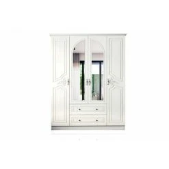 This 4 doors wardrobe Includes; 11 fixed shelves, 1 aluminum hanging rod and 2 drawers.