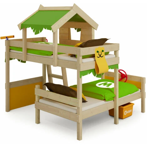 Roaaaar! The mighty roar of a lion can be heard from the jungle. Half the safari group climb nimbly over the sloping climbing wall up to the view point in the base camp Wickey CrAzY Jungle. The rest of the observers take up a position on the lower observation deck and excitedly pull out their telescope. In the wild jungle valley they can see a lion running playfully alongside a jeep.