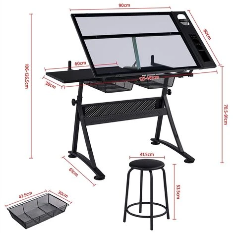 Glass tabletop size (workspace): 90x60cm/35.4×23.6’’ (LxW)