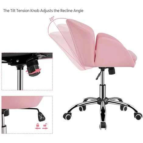 This rolling desk chair will not be out of your expectation. Silky velvet and soft foam make this task chair comfortable to sit; a sturdy metal foot base and five multidirectional casters allow you freely move from one work task to another. With an SGS-Certified pneumatic cylinder (CLASS 2), you can use the adjustment lever to lift the chair to 81.5cm or push it down to 72cm. The tilt tension knob can help you recline on this chair within the angle range of 20 degrees. This mid-back armchair’s flower petal design provides a comfortable sitting experience and decorates your home/office flawlessly.