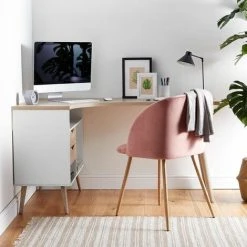 WAHSON OFFICE CHAIRS Desk Chair Modern Swivel Task Chair Without Wheels For Bedroom Home Office, Velvet, White